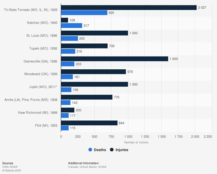 Deadliest Tornadoes in the History of the United States as of 2019, by Number of Victims