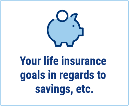 - What are your goals? What do you want your life insurance to help you and your family with in terms of expenses, savings, etc.?